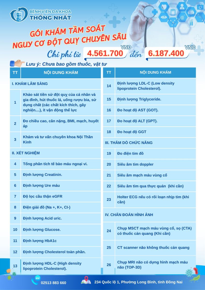 16. Gói khám tầm soát nguy cơ đột quỵ chuyên sâu: Dành cho người có tiền sử bệnh lý về tim mạch, đột quỵ, người có nguy cơ cao hoặc có nhu cầu kiểm tra toàn diện