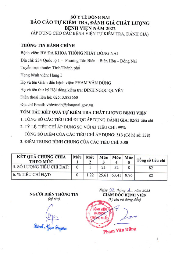 “Bệnh viện đa khoa Thống Nhất - Đồng Nai là Cấp khám bệnh, chữa bệnh CHUYÊN SÂU, SỐ ĐIỂM: 80”