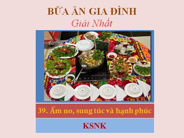 Theo đó, giải Nhất thuộc về Khoa Kiểm soát nhiễm khuẩn; 2 giải Nhì thuộc về Khoa Nội tiết và Ngoại lồng ngực; 3 giải Ba là các Khoa Y dược cổ truyền, Ngoại niệu và Khoa Dinh dưỡng. Ngoài ra, còn có 10 giải Khuyến khích được trao cho những tổ công đoàn có những bữa ăn đủ dinh dưỡng, ngon và trình bày đẹp mắt.