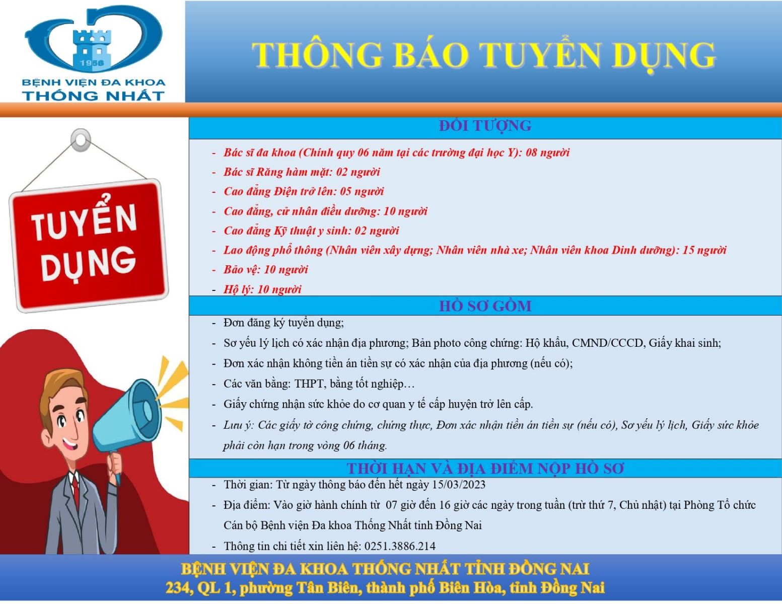 Bệnh viện Đa Khoa Thống Nhất tuyển dụng