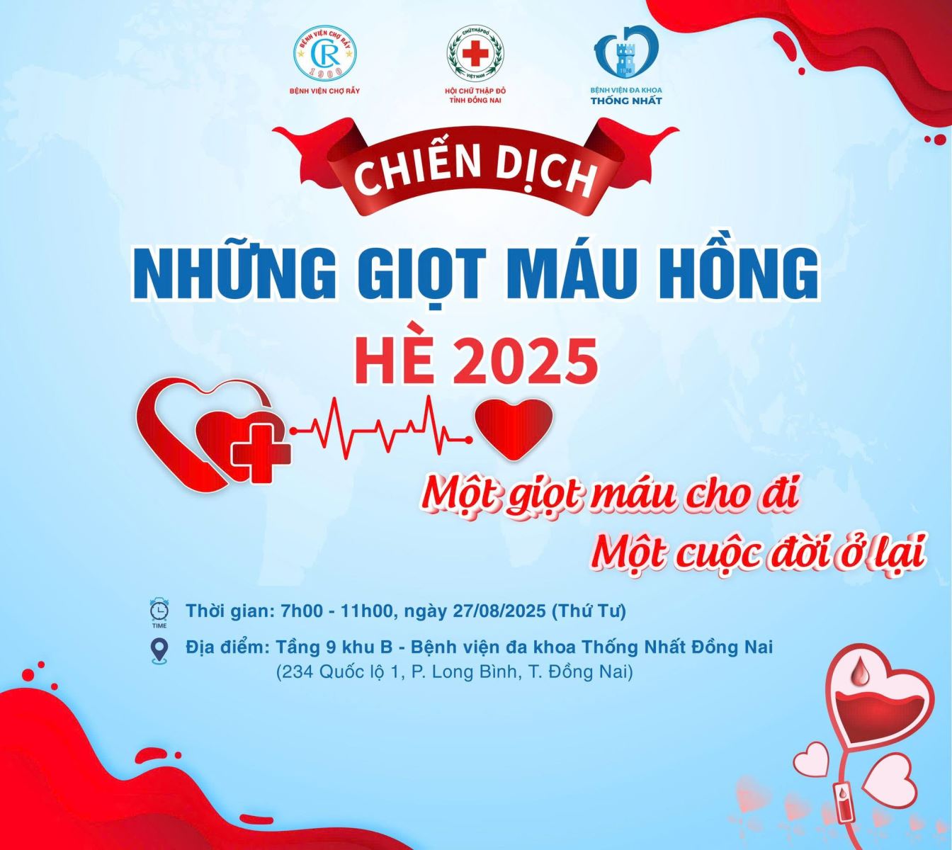Hãy cùng chung tay lan tỏa yêu thương và sẻ chia sự sống qua hoạt động hiến máu tình nguyện do Bệnh viện Chợ Rẫy, Hội Chữ thập đỏ tỉnh Đồng Nai và Bệnh viện Đa khoa Thống Nhất Đồng Nai phối hợp tổ chức.