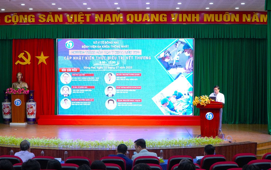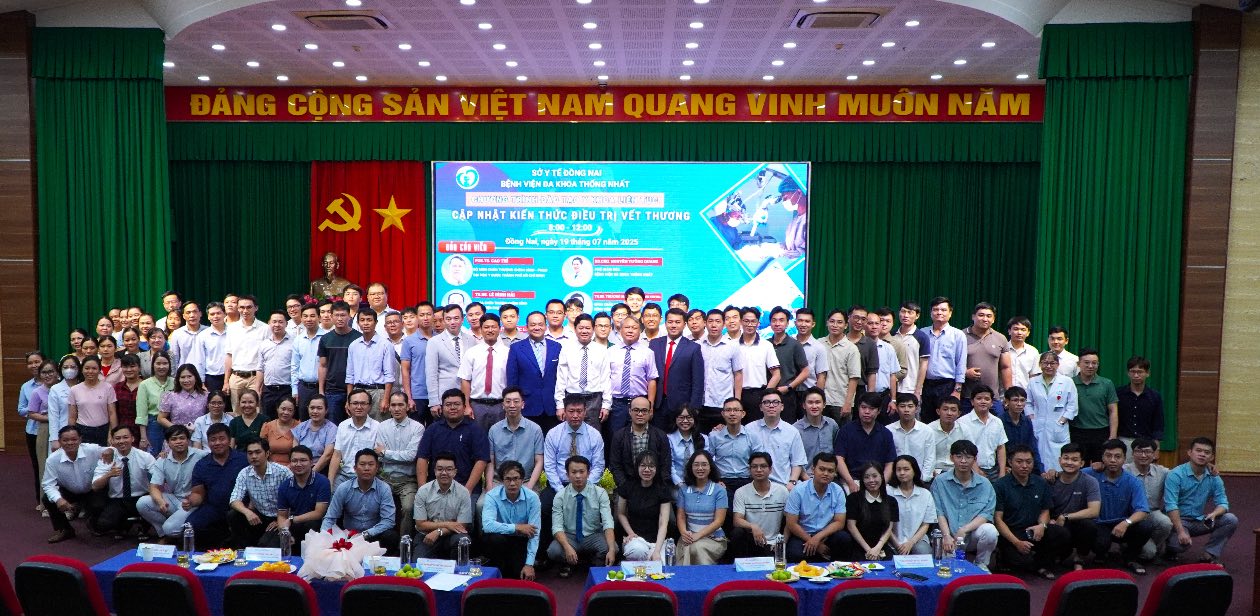 Sáng 19/7/2025, Bệnh viện Đa khoa Thống Nhất Đồng Nai long trọng tổ chức Hội thảo chuyên đề: Cập nhật kiến thức điều trị vết thương với sự tham dự của nhiều chuyên gia đầu ngành đến từ Trường Đại học Y Dược TP.HCM và Bệnh viện Chợ Rẫy như PGS.TS Cao Thỉ, TS. Lê Đình Hải, TS. Trương Nguyễn Khánh Hưng, TS. Nguyễn Ngọc Thạch cùng chia sẻ kinh nghiệm thực tiễn, trao đổi kiến thức và đề xuất giải pháp điều trị an toàn – hiệu quả.
