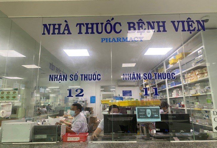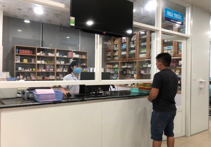 Nhân viên nhà thuốc bệnh viện bán thuốc cho người bệnh