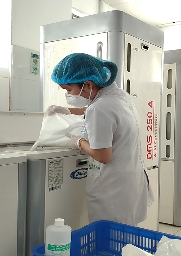 - Tổ chức pha chế thuốc (dịch lọc thận), hóa chất sát khuẩn.