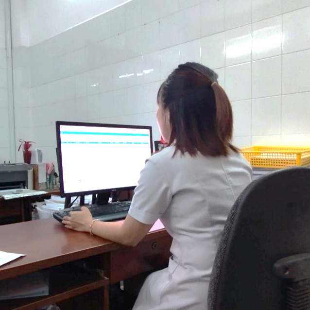 Nhân viên thống kê Dược đang thực hiện ánh xạ và nhập hóa đơn lên hệ thống eHospital
