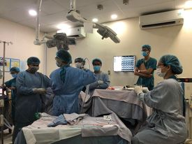 Bs. CAO CHÍ VIẾT đang thực hiện kỹ thuật PCNL- nội soi tán sỏi thận qua da bên trái bằng lasser |