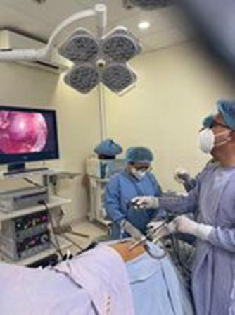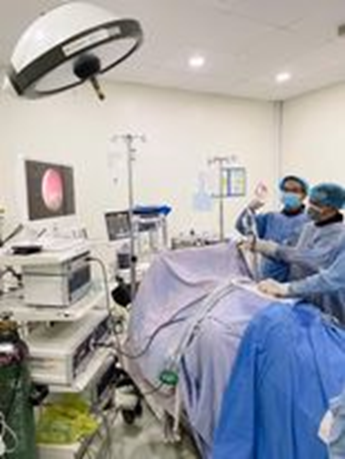 BS CAO CHÍ VIẾT đang thực hiện kỹ thuật nội soi hông lưng lấy sỏi niệu quản đoạn lưng |