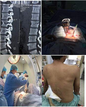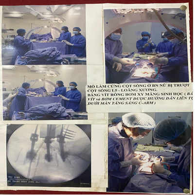 - Năm 2015 phẫu thuật cột sống cổ, phẫu thuật làm cứng cột sống dùng vít rỗng bơm cement cho bệnh nhân loãng xương.