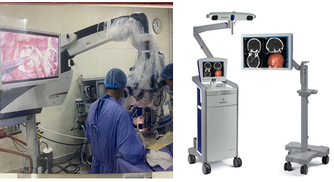 Phẫu thuật sọ não sử dụng kính vi phẫu (ảnh trái), hệ thống máy định vị Stealthstation s7 (ảnh phải). |