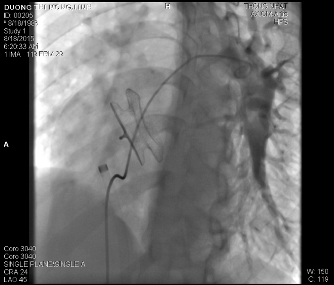 | Một trường hợp đăt lưới lọc Option Elite vào tĩnh mạch chủ dưới đoạn dưới tĩnh mạch thận phải |