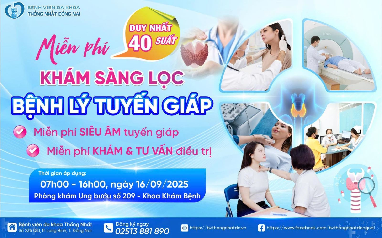 Bệnh viện Đa khoa Thống Nhất Đồng Nai trân trọng kính mời quý người dân quan tâm đến sức khỏe tuyến giáp của mình hãy đến tham gia để được tư vấn và khám bệnh miễn phí.