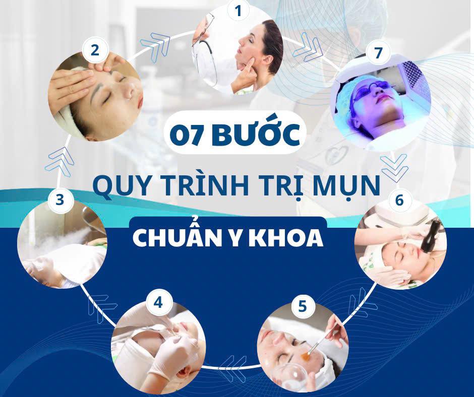 Tại Khoa Khám bệnh và Điều trị theo yêu cầu – Phòng khám Da liễu – Thẩm mỹ da, chúng tôi mang đến quy trình trị mụn chuẩn y khoa 7 bước giúp bạn sở hữu làn da mịn màng, an toàn và hiệu quả trong mùa lễ hội.