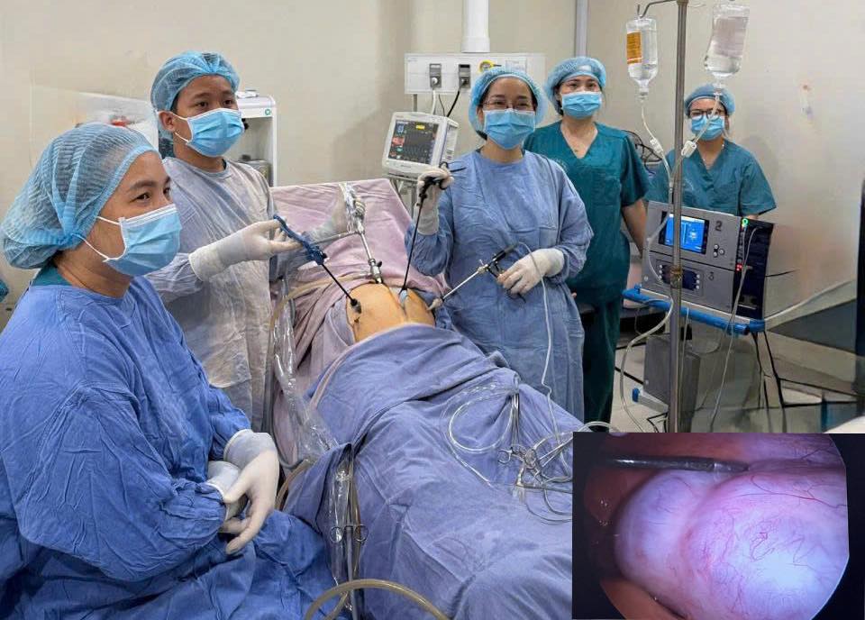 Bệnh nhân là chị N.T.L (30 tuổi, ngụ TP.Cần Thơ) nhập viện trong tình trạng bụng to nhanh, căng tức khó chịu. Kết quả siêu âm cho thấy khối u gần 20 cm, chiếm gần toàn bộ ổ bụng và chèn ép thai nhi. Nhận định đây là trường hợp hiếm gặp và nguy cơ cao, ê-kíp bác sĩ đã hội chẩn liên chuyên khoa, quyết định phẫu thuật nội soi hiện đại – giúp giảm xâm lấn, ít đau, thẩm mỹ cao và đặc biệt an toàn cho thai phụ.