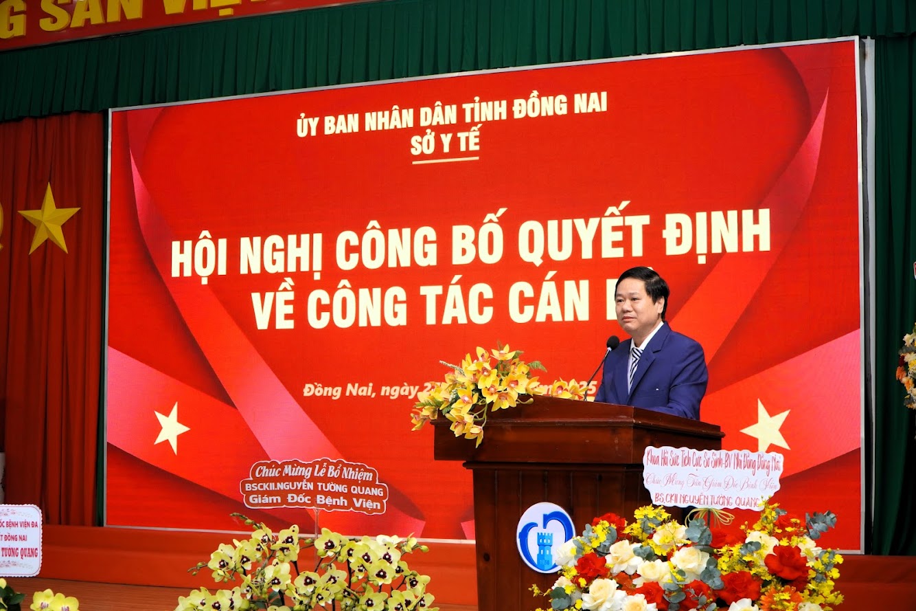 Phát biểu nhận nhiệm vụ, BS.CKII Nguyễn Tường Quang gửi lời cảm ơn sâu sắc đến lãnh đạo tỉnh, Sở Y tế và toàn thể cán bộ, nhân viên bệnh viện đã luôn tin tưởng, đồng hành. Bác sĩ cam kết sẽ nỗ lực hết mình, phát huy truyền thống tốt đẹp của đơn vị, nâng cao chất lượng khám chữa bệnh, hướng đến sự hài lòng của người bệnh và sự phát triển bền vững của ngành Y tế Đồng Nai.